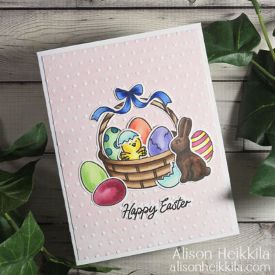 Hello! Today's card uses the Spring Tweetings Stamp & Cut from Hero Arts to make a sweet Easter card. I don't get to color as much as I'd like to lately, so I was really happy to pull out my Copics and color a whole bunch of eggs. I got to use one of my favorite embossing folders too for a quick ... Read More about Spring Tweetings Easter Card