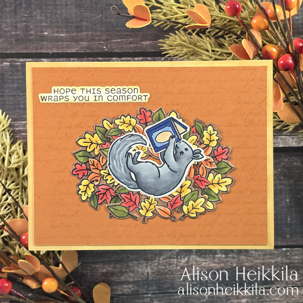 Hello! Today I have another card that features the September ’25 Card Kit of the Month from Hero Arts. The stamp set for this month is filled with adorable squirrels, pumpkins, leaves, and other decorations that allow you to make clean and simple cards, like this one I made HERE, or fun playful ones like the card I’m sharing today.
