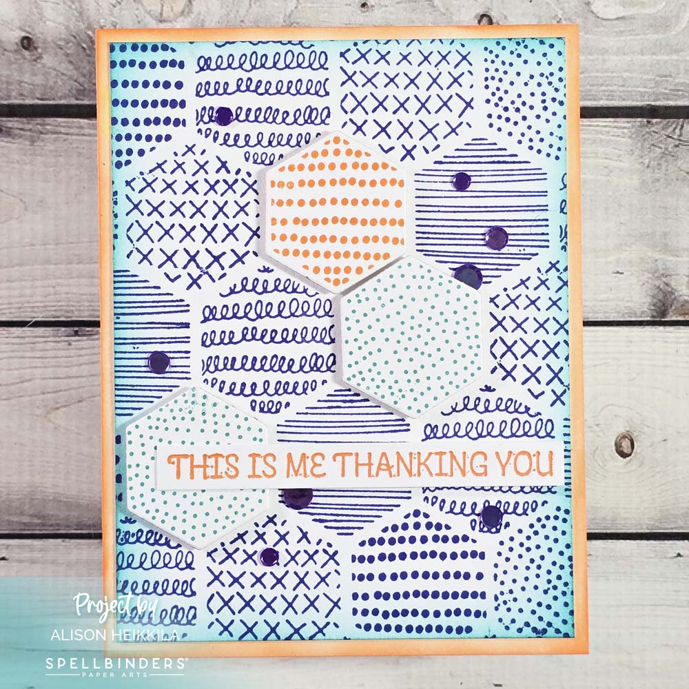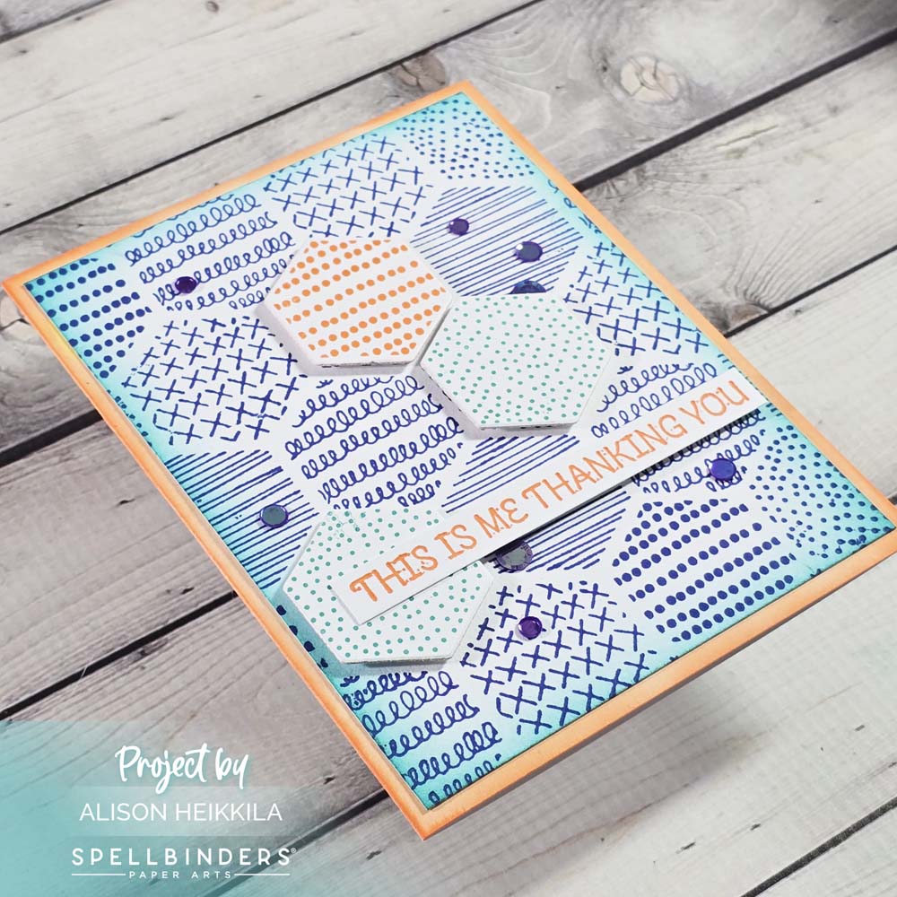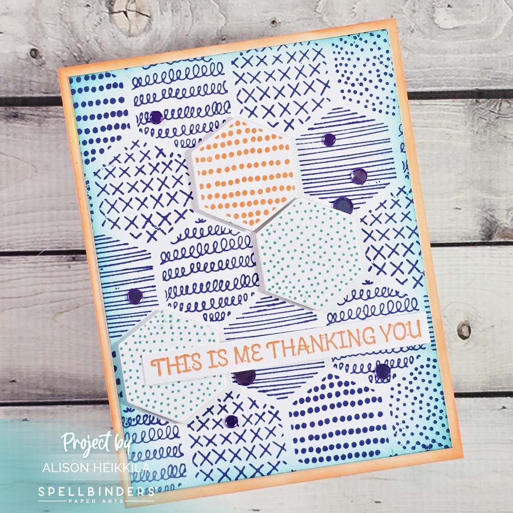 Hello! Today’s card features the September BetterPress of the Month from Spellbinders. Hexagons are one of my favorite shapes, so I was really excited to see this Plate. I really like the hand-drawn look of the doodles too.
