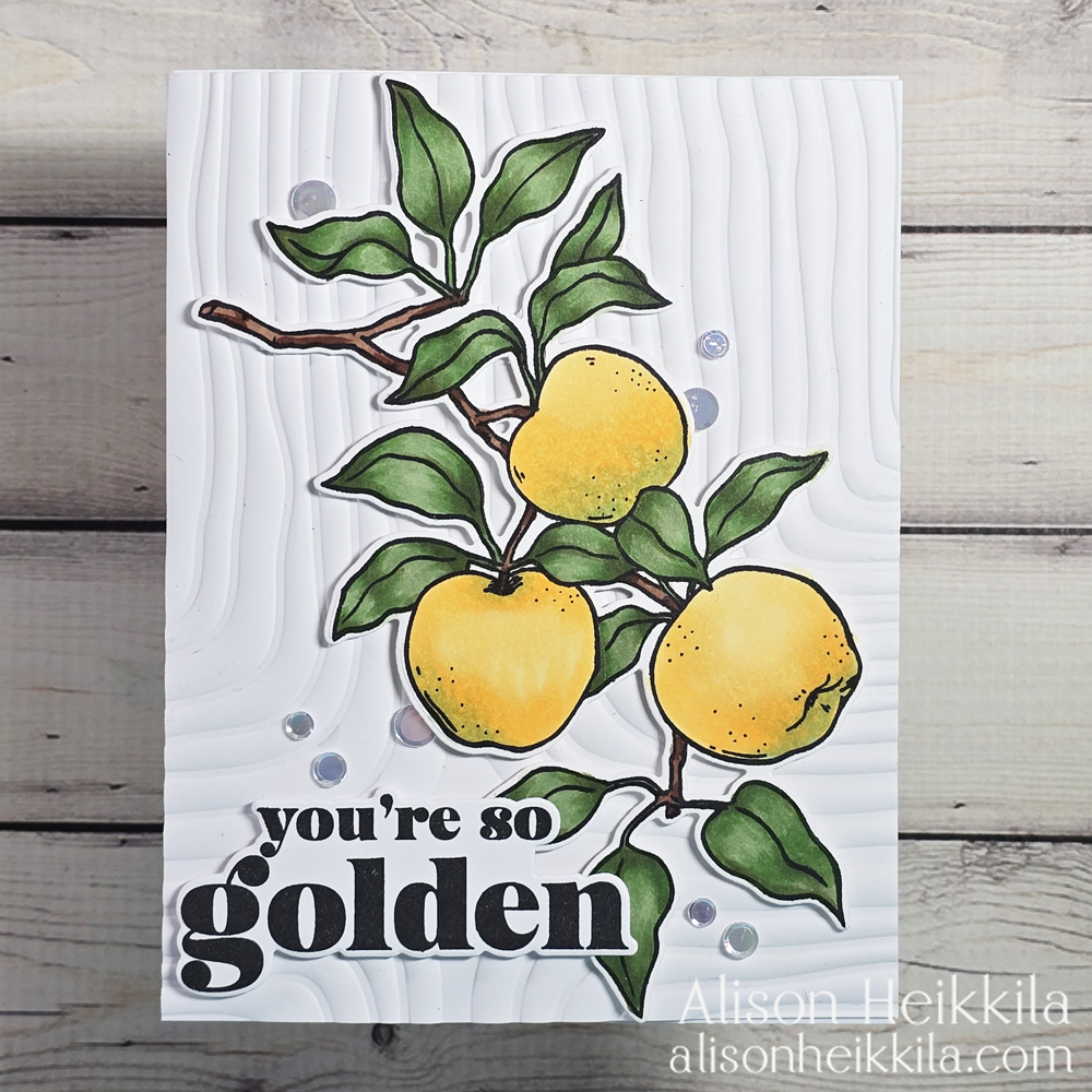 Hello! I mentioned the other day how much I love the new I Pick You Collection from Hero Arts. I love using fruit imagery, and apples are one of my favorite fruits to color because they can be so many colors. I used the Apple Branch Stamp & Cut for today’s card, which is my favorite part of this collection.