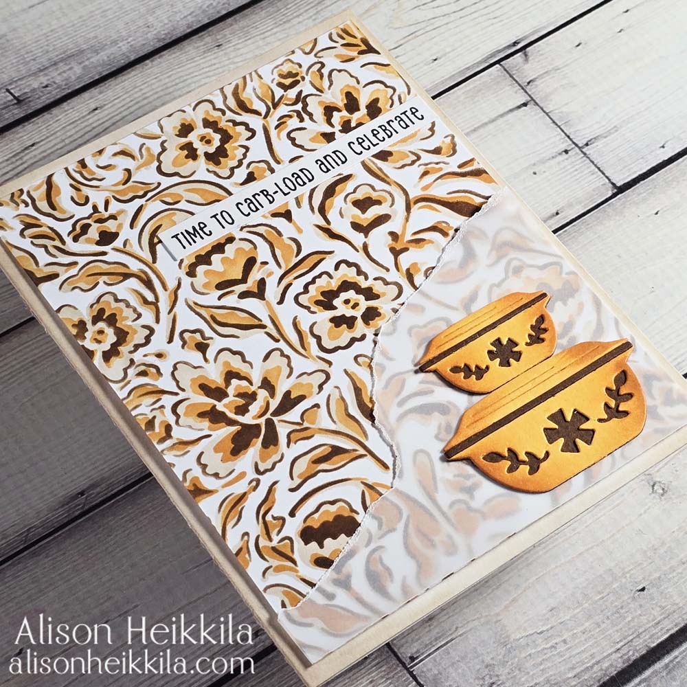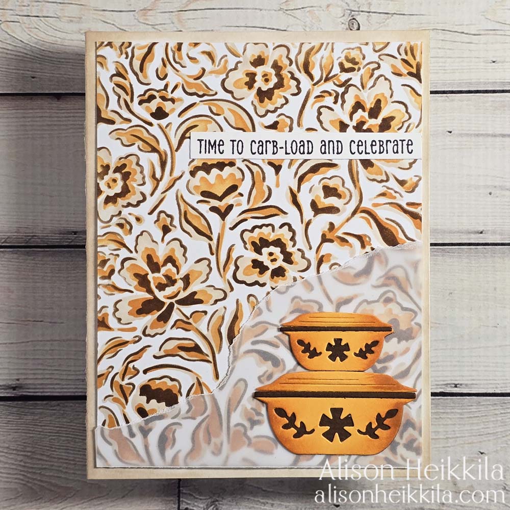 Hello! I wanted to make a card that would be great for a foodie or a family member that you love breaking bread with. I also wanted to use some autumnal colors because it still feels like Summer here, and I am wishing for some blustery, chilly days. I used a couple of products that were released earlier this year from Hero Arts, and I think they look great together.