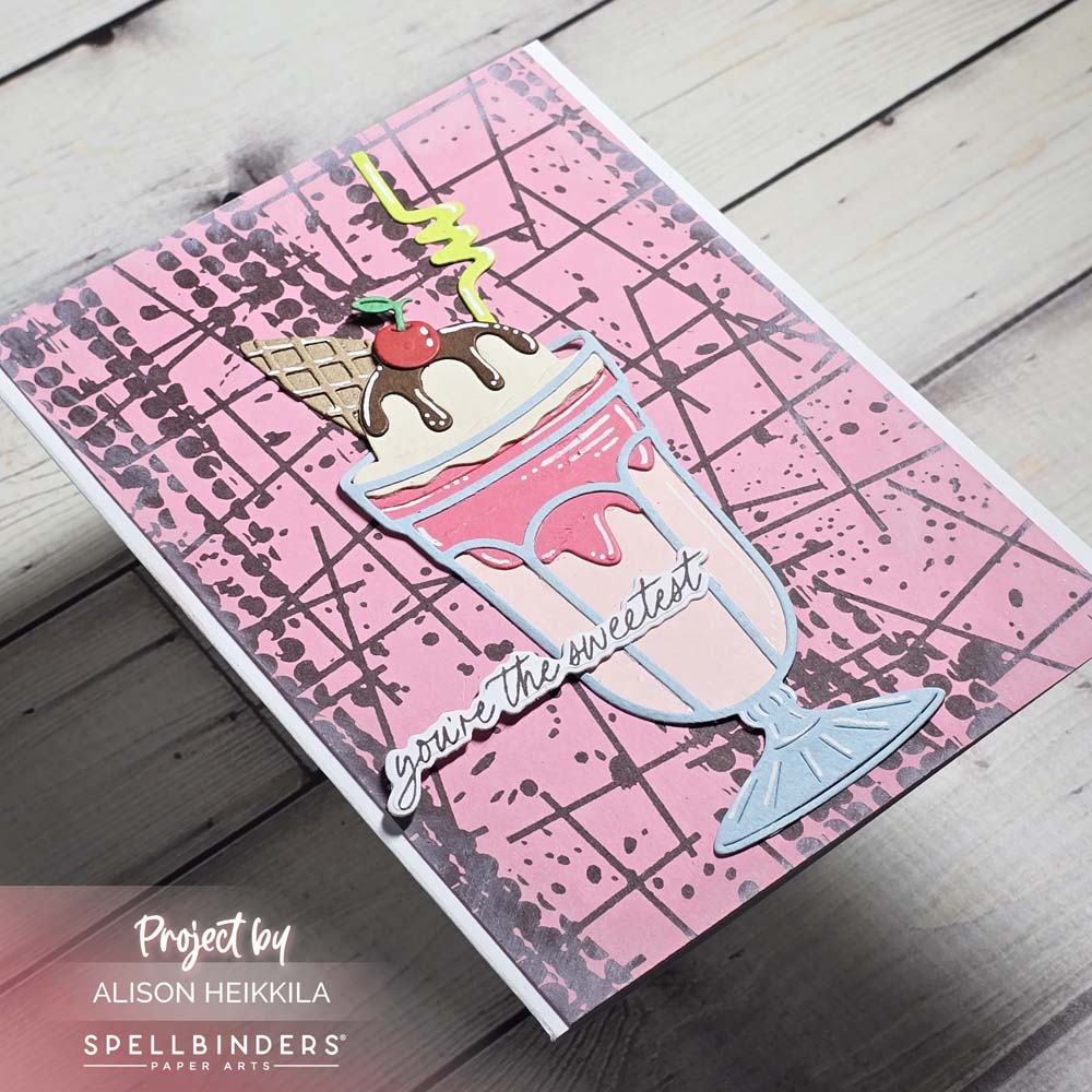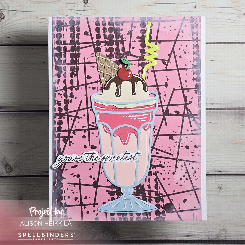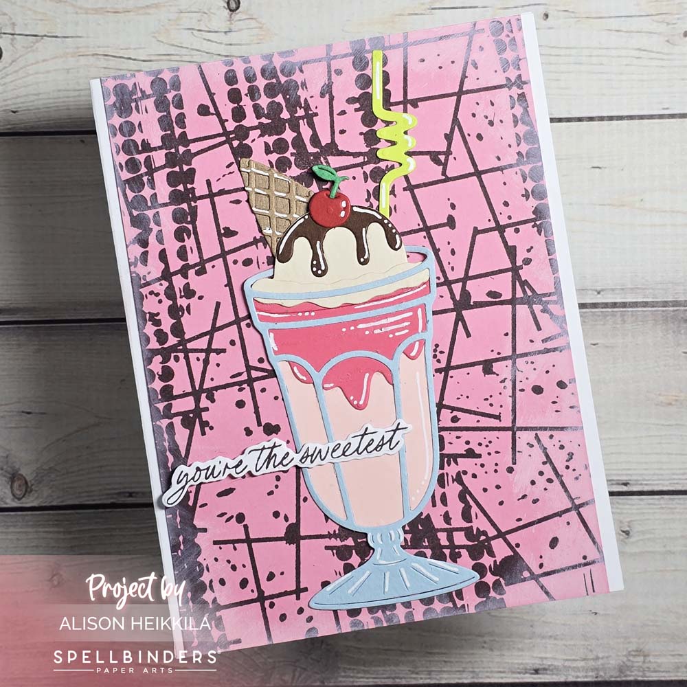 Hello! I have a sweet card to share with you that uses a funky new BetterPress Plate and the Fountain Wishes Die Set, which are both from Spellbinders. When I put together this die set, I immediately wanted to make a real sundae for myself!