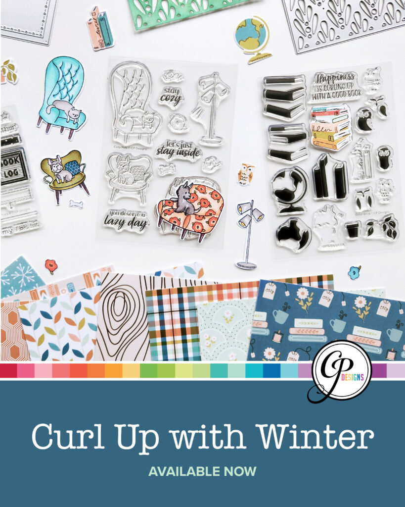 Hello! Catherine Pooler‘s newest collection is officially dropping today, called Curl Up with Winter. As I mentioned in THIS post, I love to craft, of course, and I also love to read. I enjoy baking too, especially with my daughter. You’ll see that this collection has a little bit of all of these things, which is so exciting! I need to get the rest of the collection, but for now, I’m going to show you 2 bookmarks that I made with the paper, some stamps, and dies from this collection. Make sure you get to the bottom of this post to learn about a special freebie!