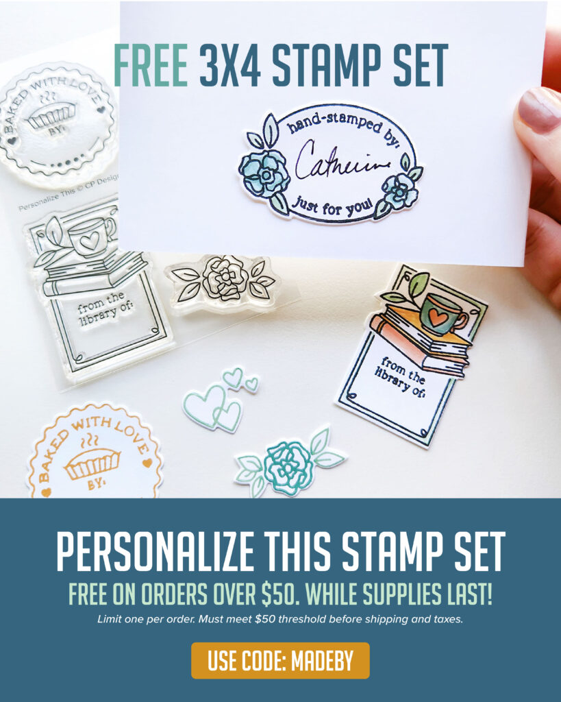 Now, how would you like to score a free Personalize This Stamp Set? Use the code in the photo, after you’ve added $50 worth of products to your cart. This is such a great set that can be used for lots of things! I hope you’re able to take advantage of this offer. Be sure to head over to the Catherine Pooler website to see the entire Curl Up with Winter Collection. Thanks for stopping by. Have an inspiring day!