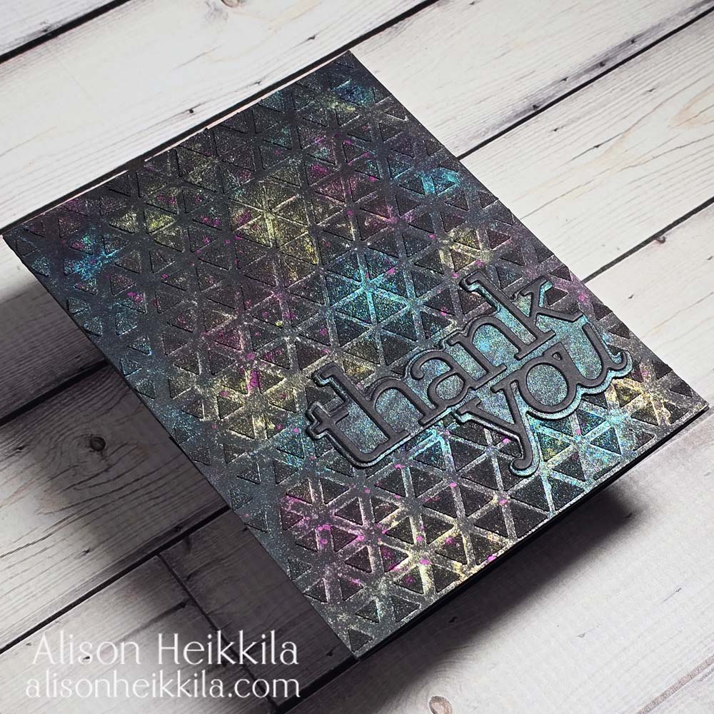 Hello! I often get so inspired by other crafters, just as we all probably do. One of my favorite YouTubers is Ardyth…she always has so many great ideas, and isn’t afraid to experiment. One of her latest videos, her Top Techniques of 2025 got me really excited to play with my Lindy’s Magicals, and to recreate one of the techniques she shared, except using black cardstock and black embossing paste, instead of white on white. Let’s see how it turned out!