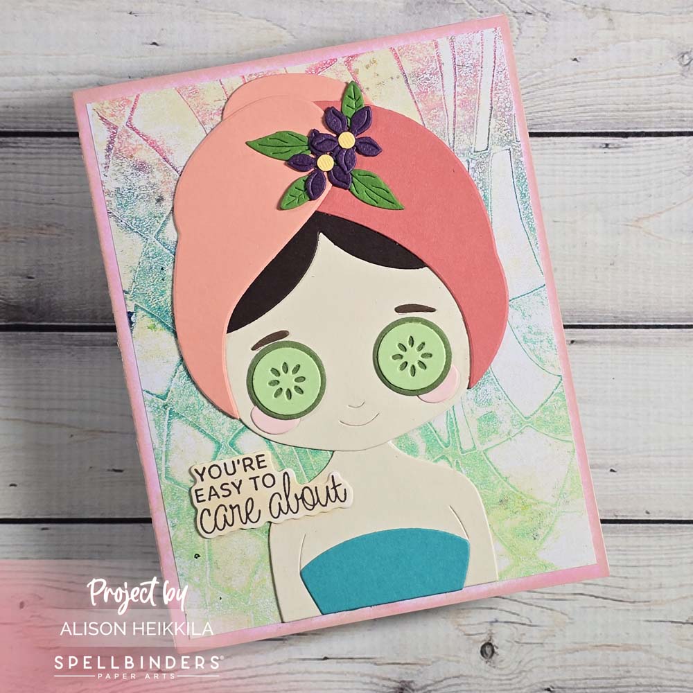 This card would be great to use if you give someone the gift of a massage, facial, etc. It’s also a great one to use to remind folks to slow down and take care of themselves. How would you use this card? I’m so glad I got to use a monoprint on this card. If you visit A Colorful Life Designs, you can use my code AlFan10 to save 10%. Be sure to visit Spellbinders to see all of this month’s Clubs. Thanks for stopping by. Have an inspiring day!