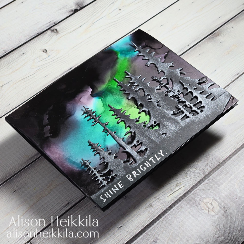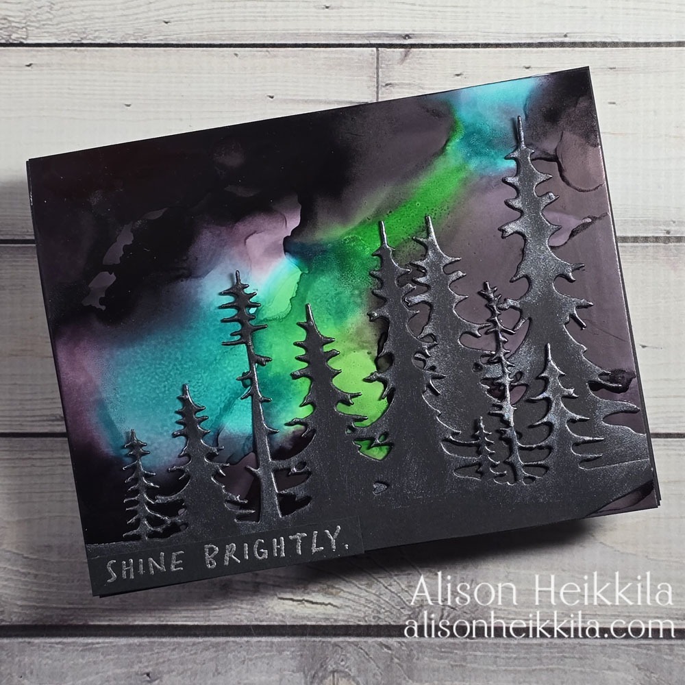 Hello! I love making cards with an aurora borealis sky. I’ve done several that you can find on my YouTube Channel. Today, I wanted to see if I could create a Northern Lights effect with Alcohol Inks. It took a few tries, but I am thrilled with the end result.