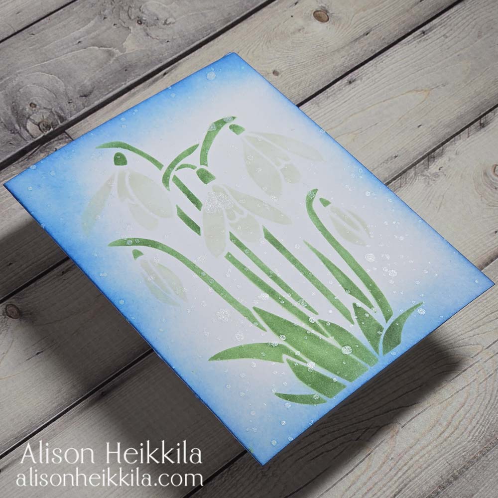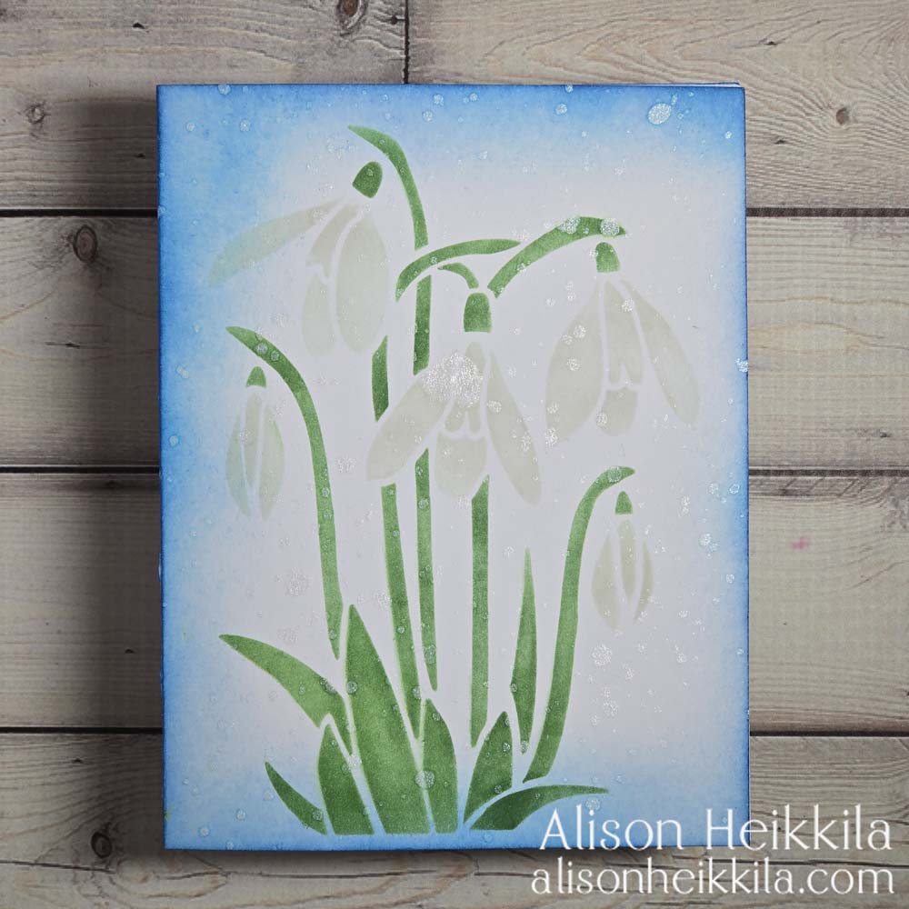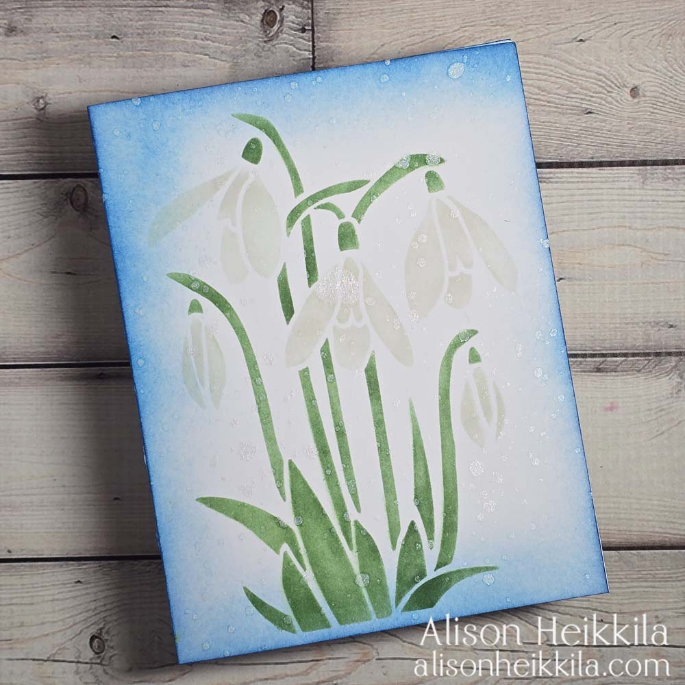 Hello! I have a type of card that I hardly ever make… a one layer card! Like a true, single layer card that has nothing added on top of the card base except ink. I just thought that the new Snow Drops Stencil from A Colorful Life Designs was perfect for a card like this. I didn’t even add a sentiment!
