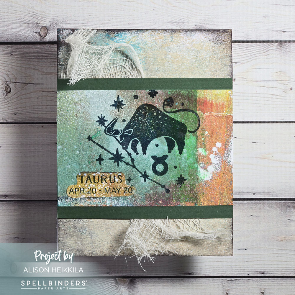 This made a really good masculine card, but truthfully, you can use it for many folks born under the Taurus sign. I love the variation of colors from the prints and the gauze really makes it interesting. Please check out the rest of the Block Print Zodiac Collection from Spellbinders. Thanks for stopping by. Have an inspiring day!