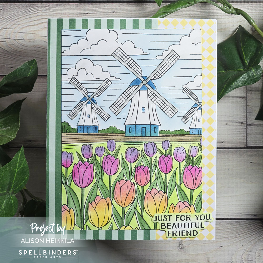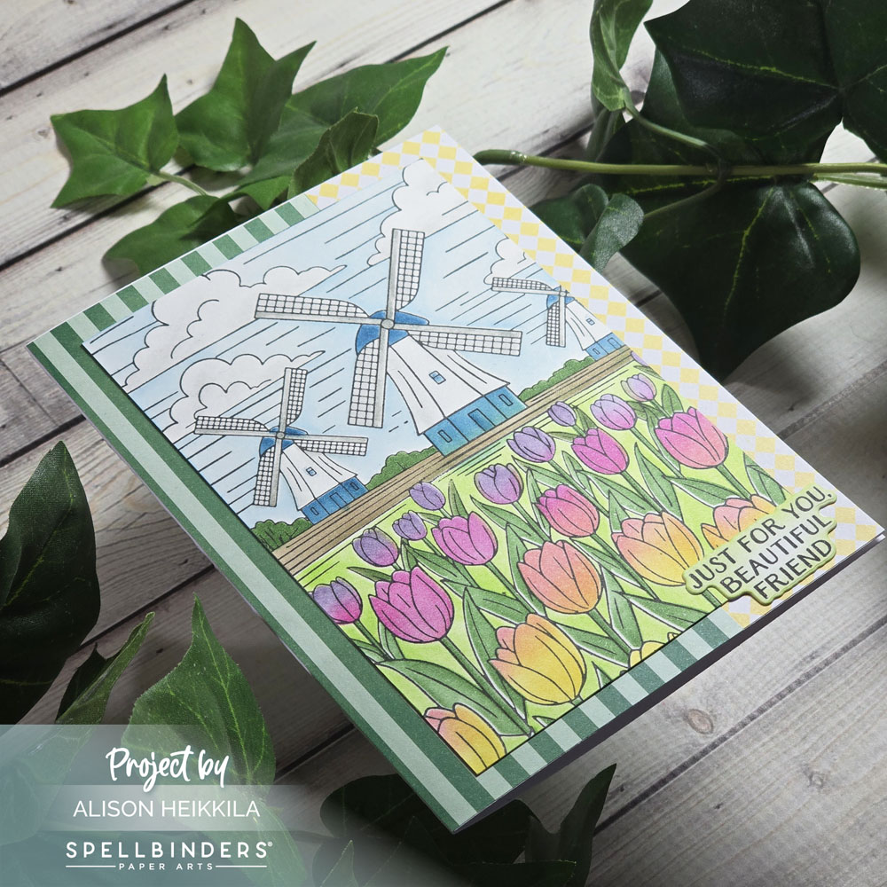 Hello! Today I have another card that uses products from the newest collection from Yana Smakula and Spellbinders, called Yana’s Tulips. I will again be using the Windmills and Tulips Press & foil Plate and Stencil Bundle. You can check out my first version HERE.