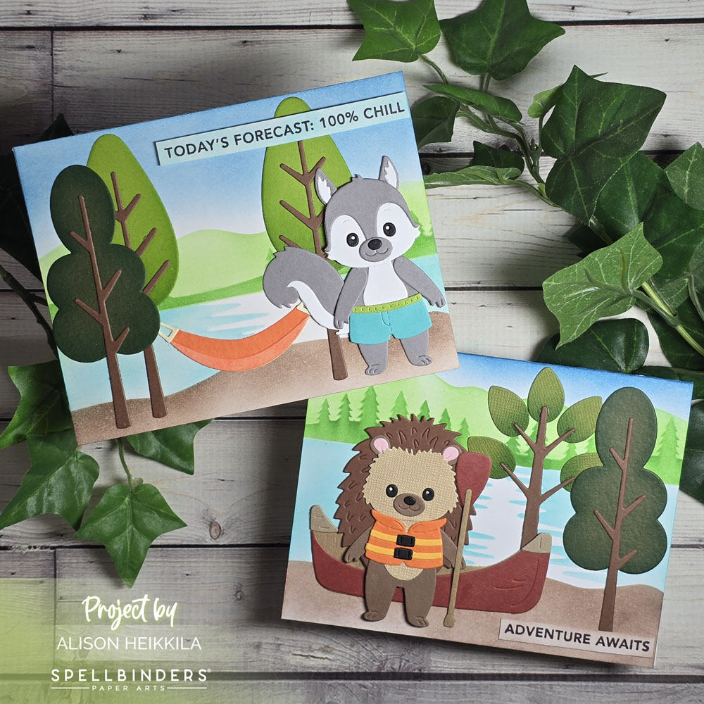 Hello! I have two adorable cards today using the Summer Camp Collection by Allison Frazier and Spellbinders. Seriously, this month has some of the most exciting releases and I can’t get enough of them. This particular collection is so adorable and has so many ways to customize your projects, it’s kinda mind-blowing.