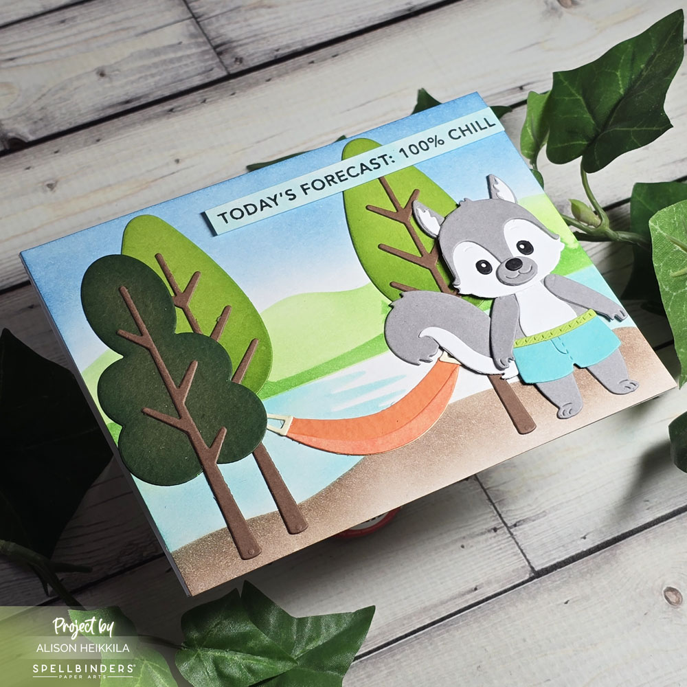 My little squirrel friend is ready for a nap. He is also from the Woodland Trio Die Set, and the hammock comes with the trees in the Trails End Die Set.