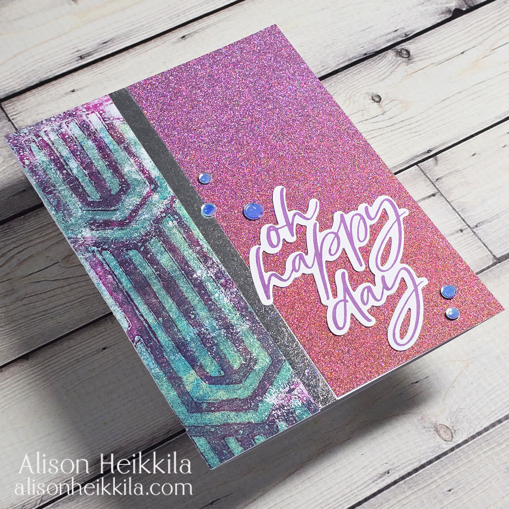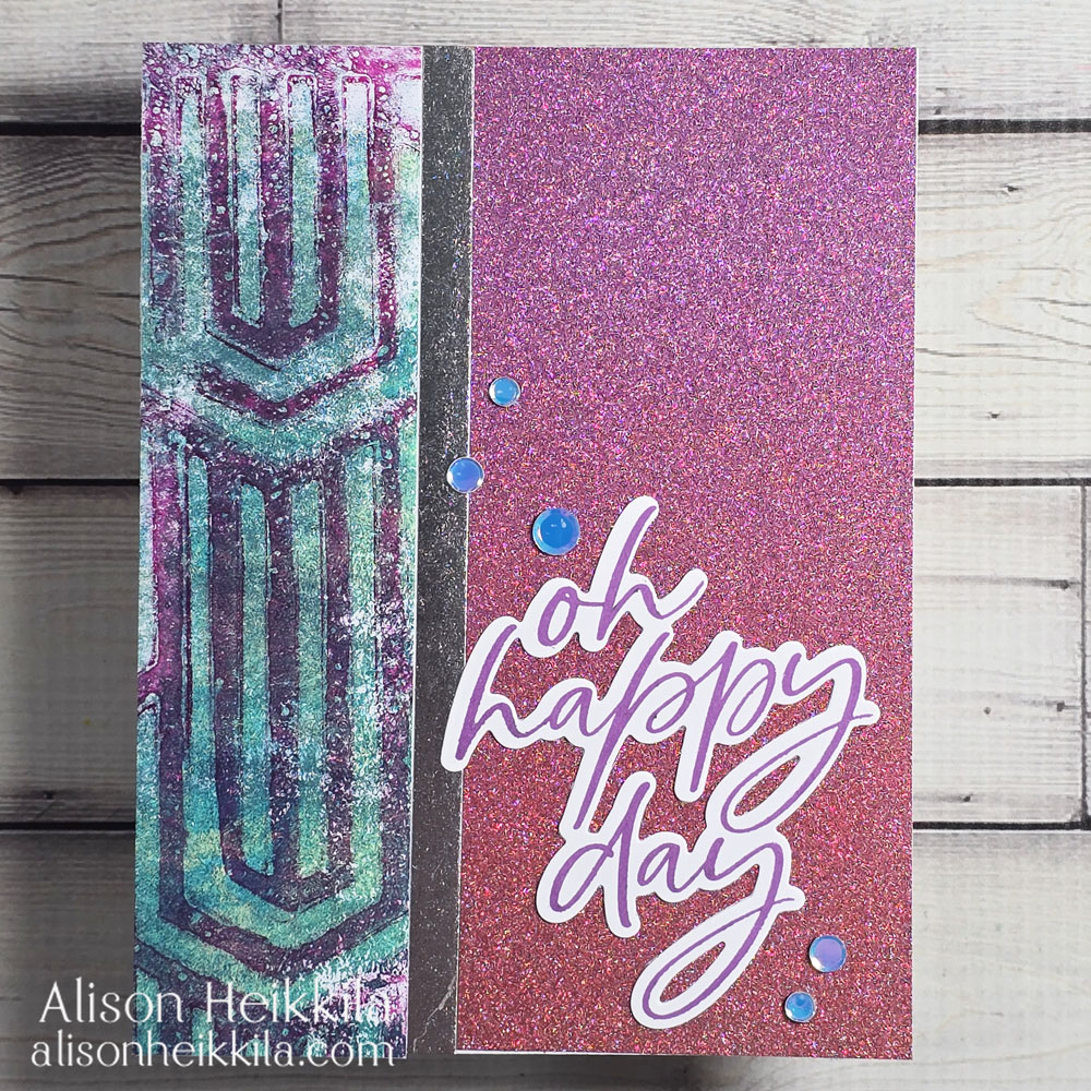 Hello! This month, the release from A Colorful Life Designs has many geometric stencil designs, and I love them. I’m a big fan of geometric designs, so I was really excited to see them all. For today’s card, I used the Arrows Stencil on my Gel Press. You’ll be seeing a lot of monoprints this month, as these stencils all work really well on the plate.