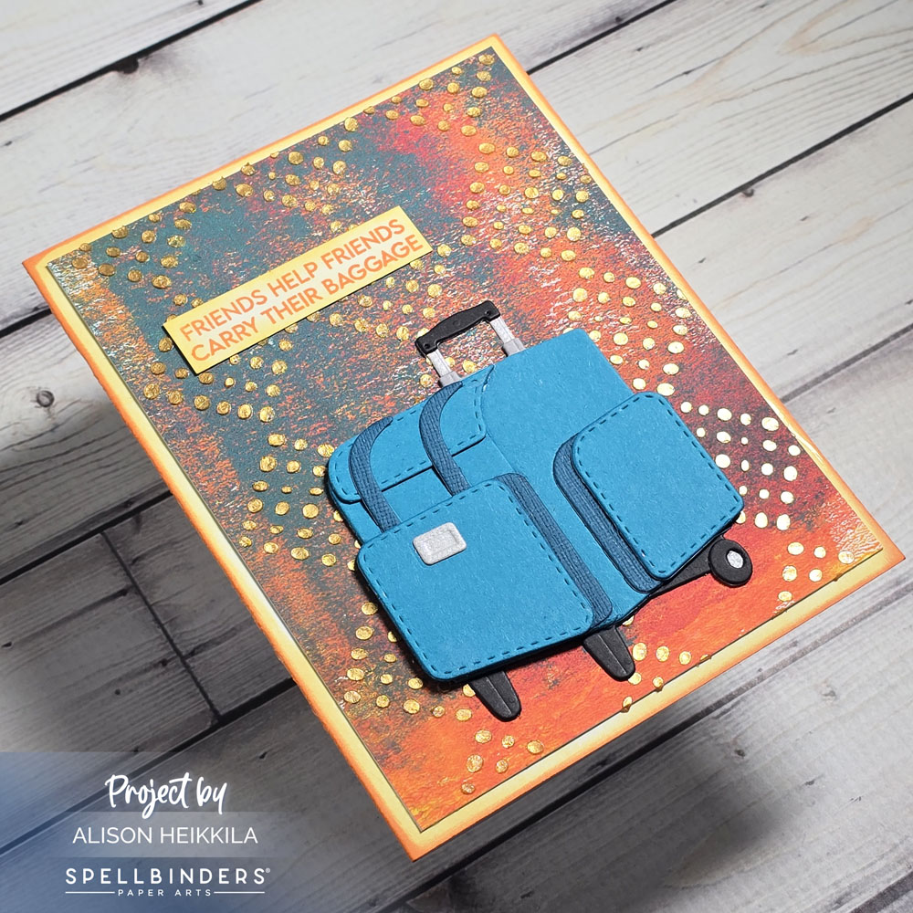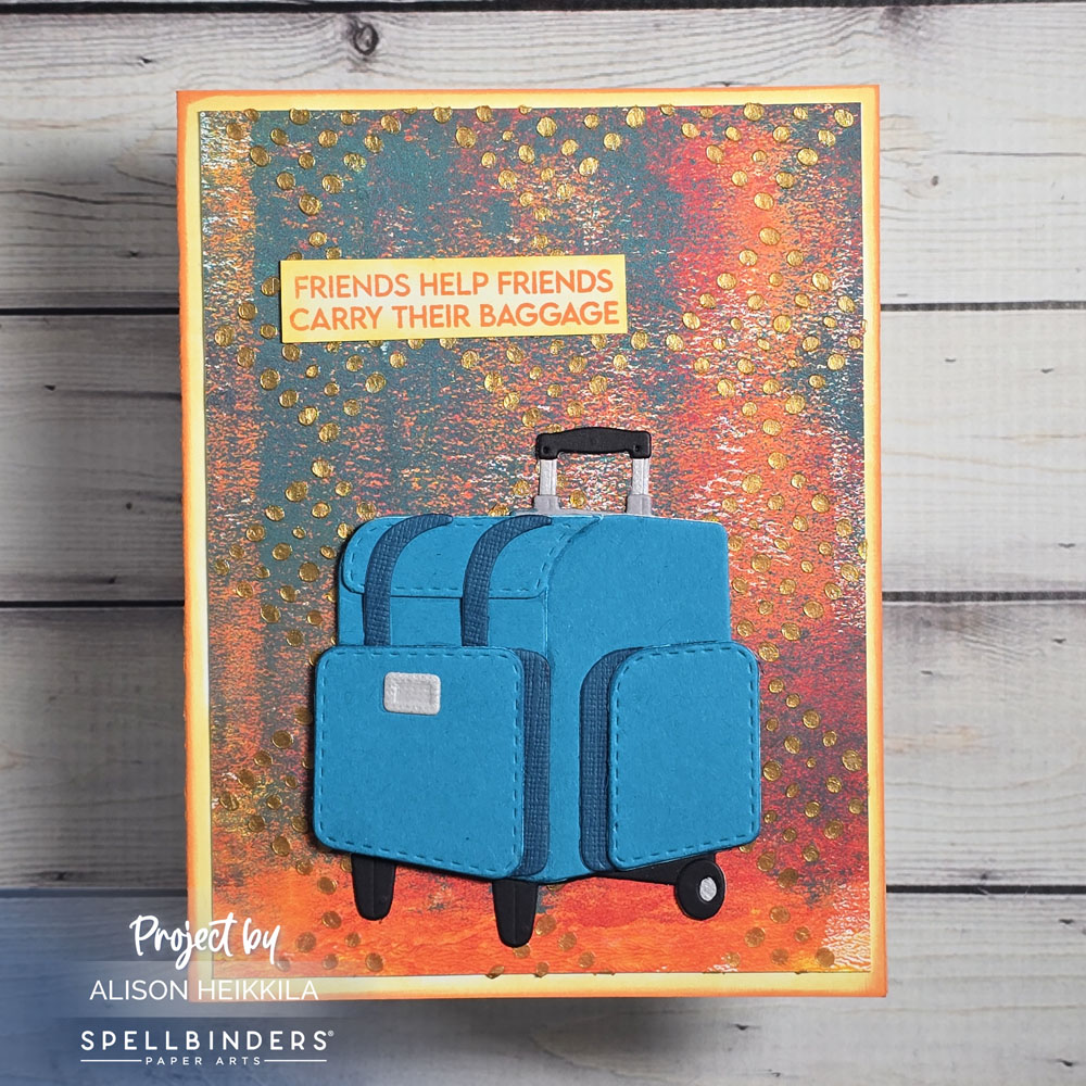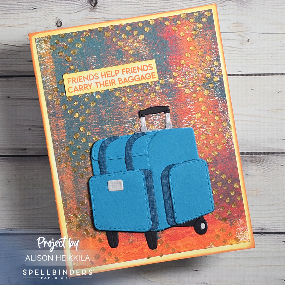 Hello! My card today not only uses a new stencil from A Colorful Life Designs, but it also uses some of the products from the new We All Have Baggage Collection from Spellbinders and Sheri Ballantyne. Sheri’s collection is really special, not just because of the fun bag/luggage dies, but also because it speaks to mental health, which is something really important to me, and I am sure many of you as well.
