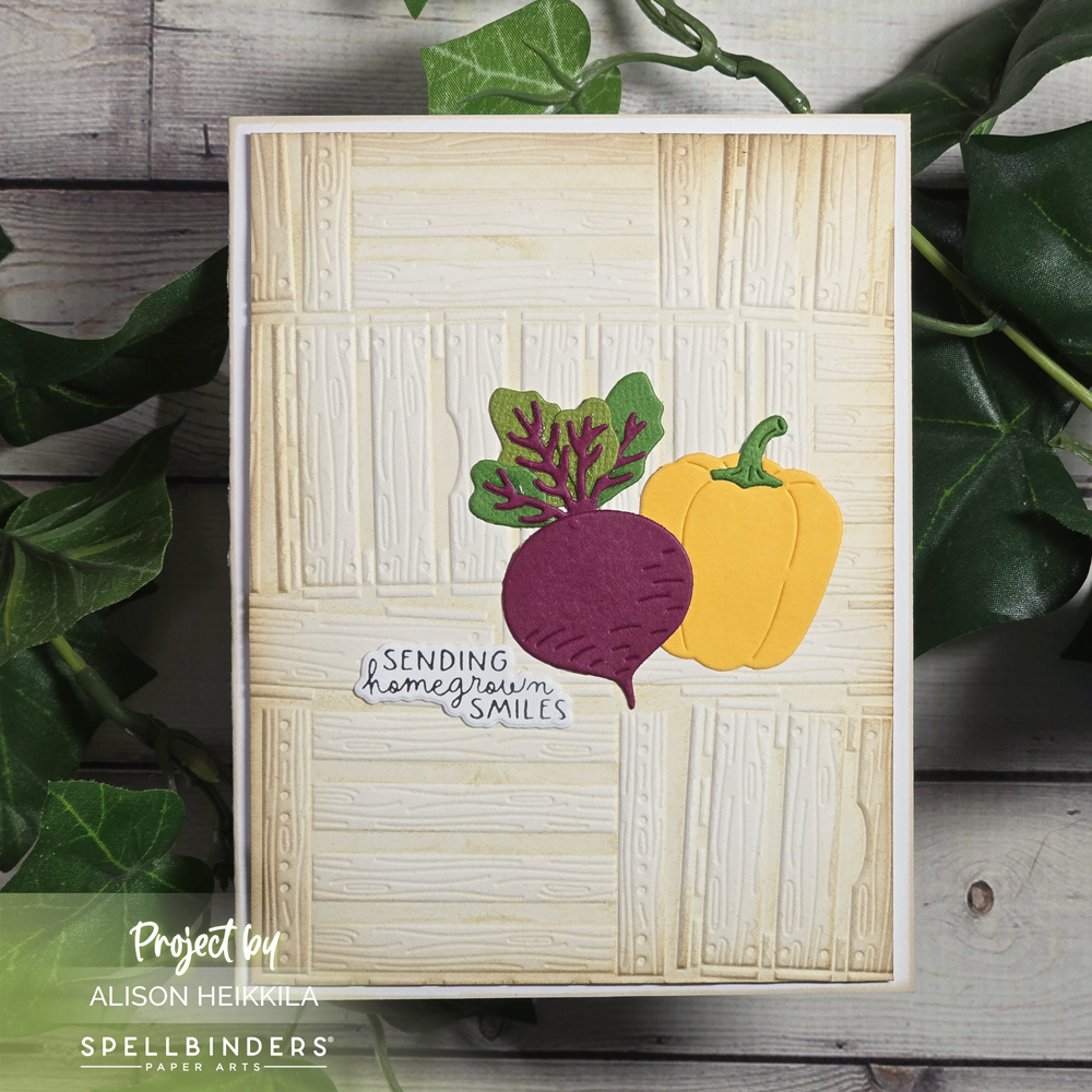 Hello! Today’s card uses some of the April 2026 Club Kits from Spellbinders. This month has a farmer’s market vibe and I am here for it. I love the veggies, flowers and embossing folders in the kits, and I am already having a lot of fun working with them.