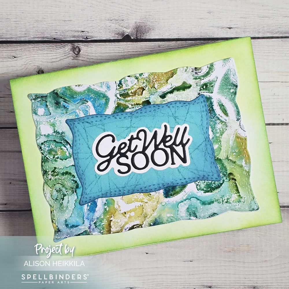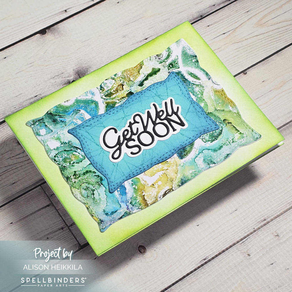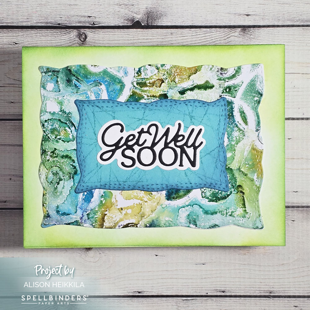 I used Crushed Olive and some residual green that was on my blending brush on the card base. I topped it all off with the Layered Get Well Soon Die Set from Spellbinders.