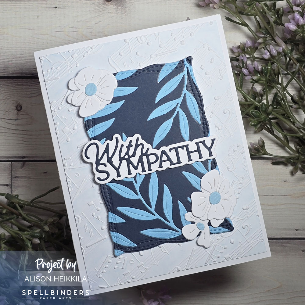 Hello! I doubt that anyone actually likes making sympathy cards, but sadly, if you’re a card maker, it’s inevitable. I decided to make today’s card a sympathy card, but you could definitely use this design for other things and change out the sentiment. Spellbinders has released a number of great collections this month, including one called Poppy Song and another is Essentially Yours Sentiments.