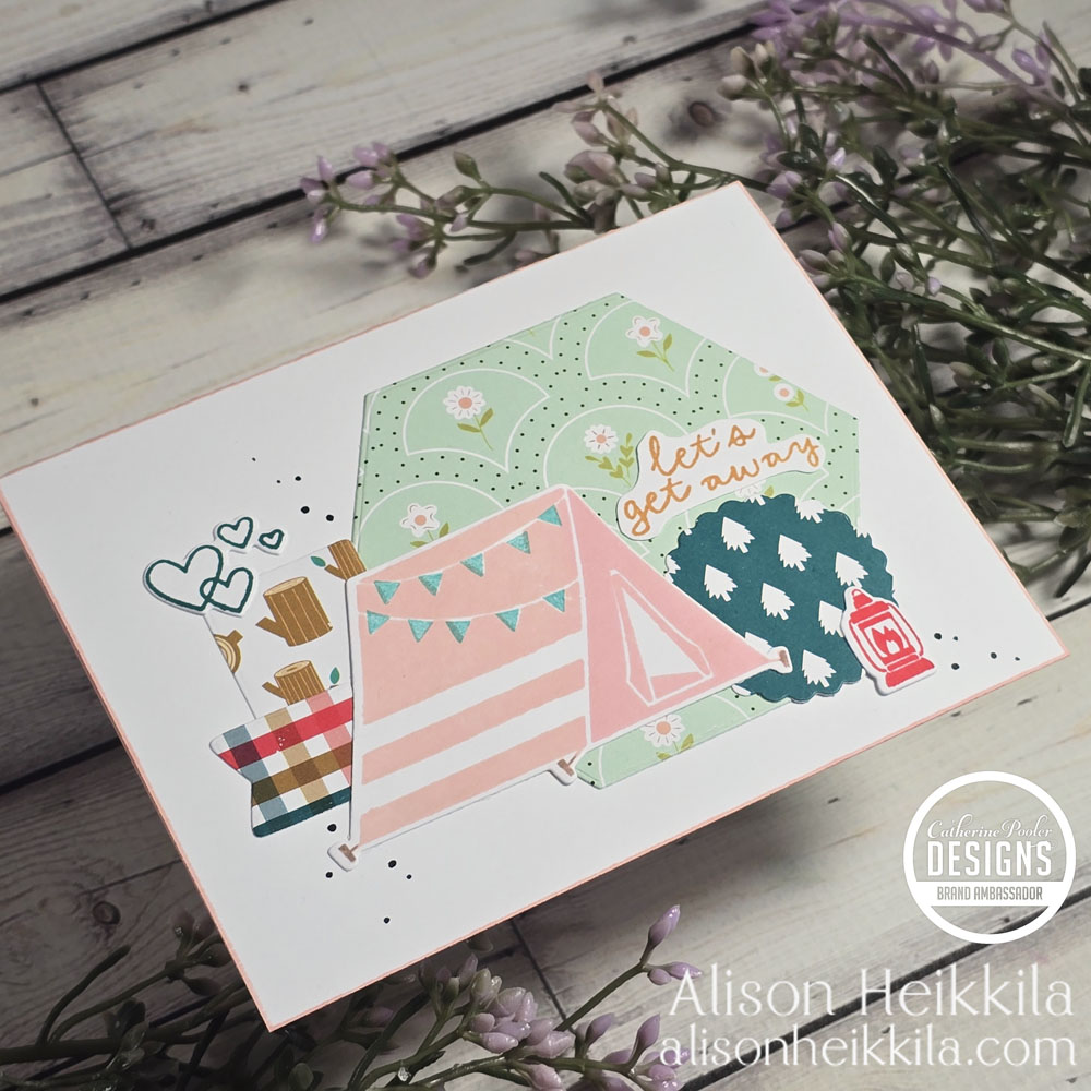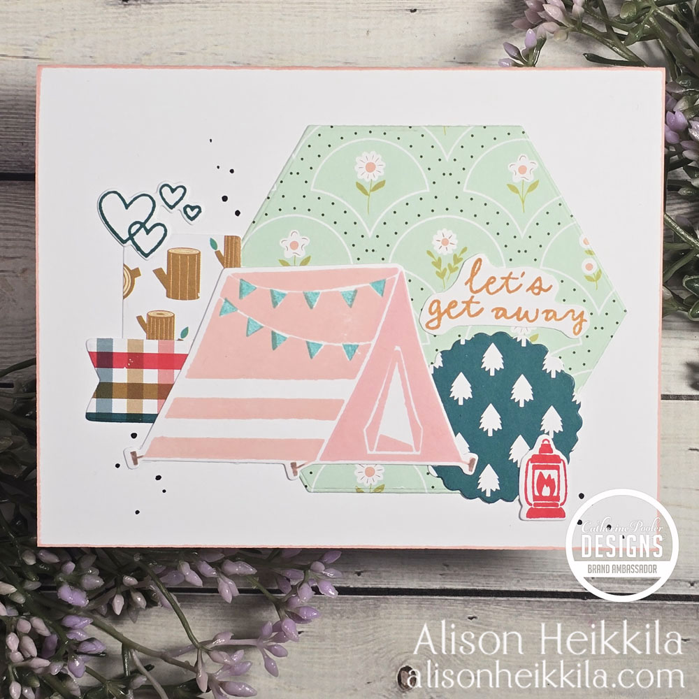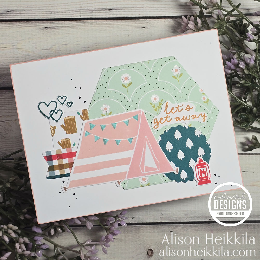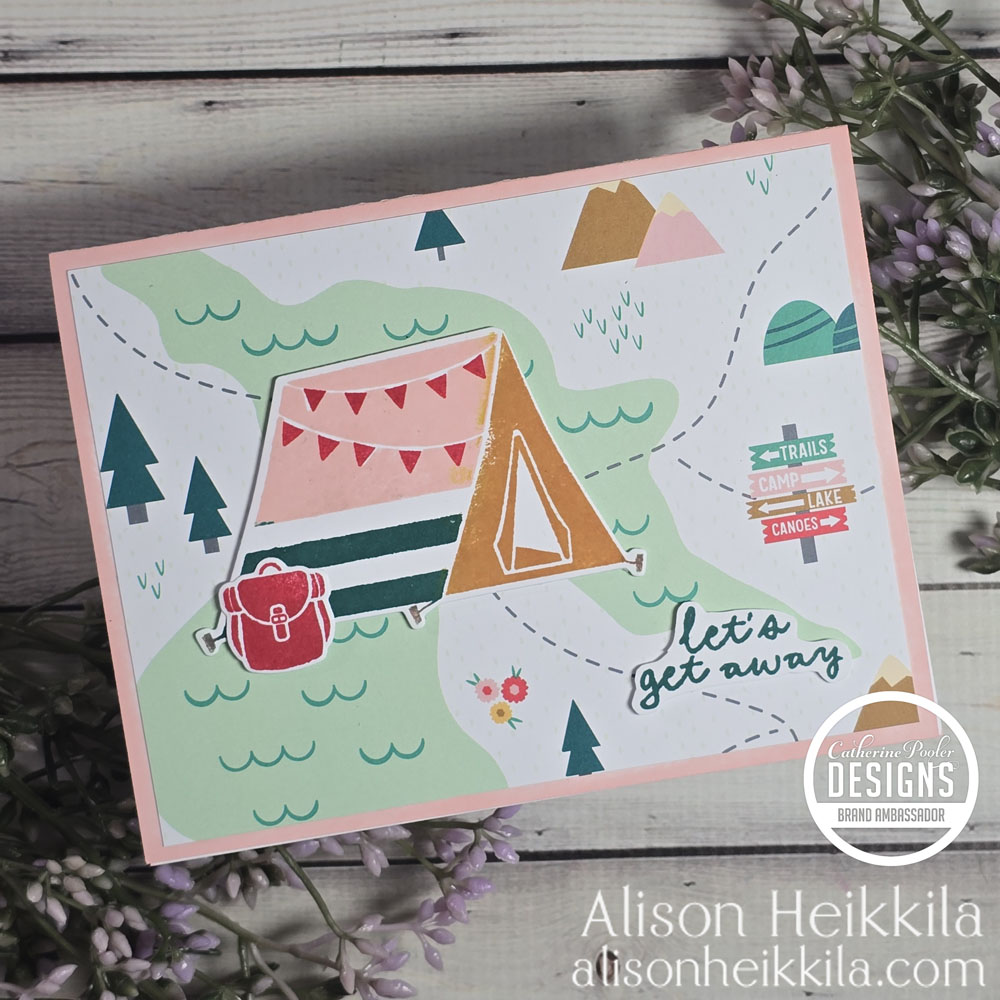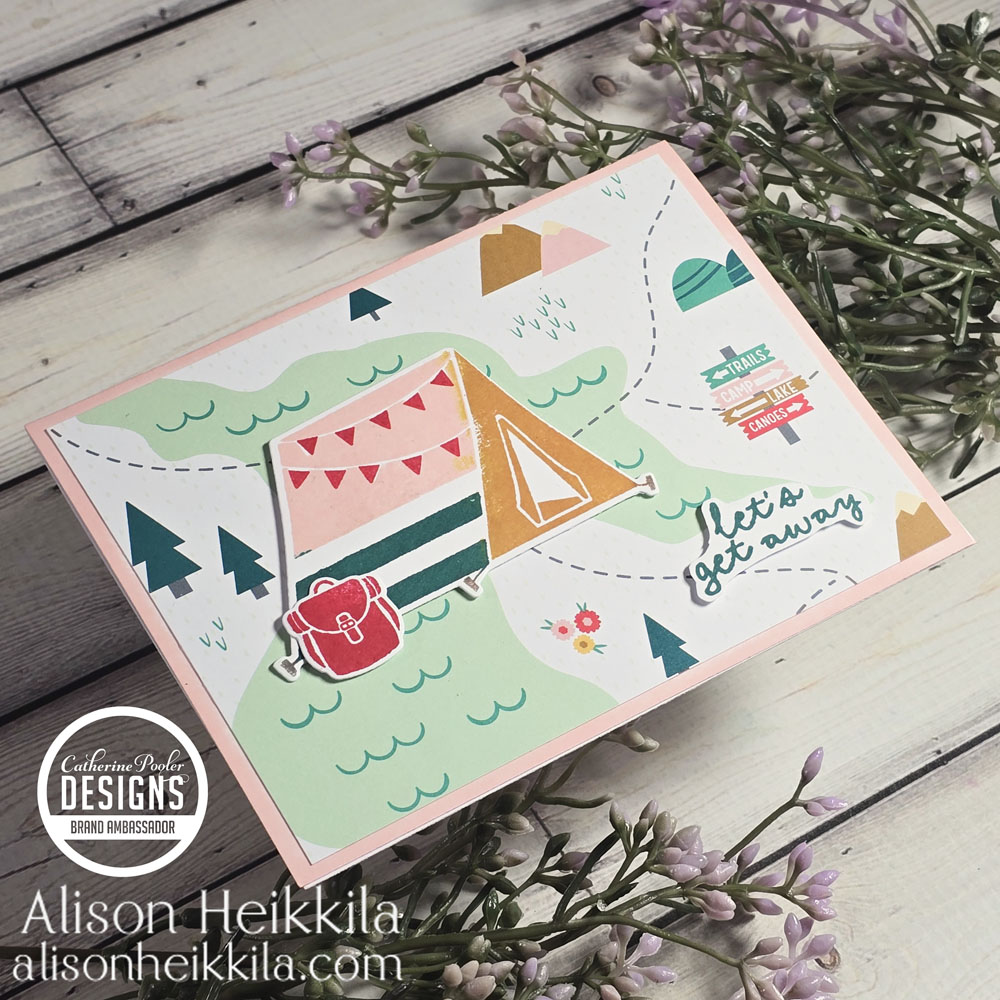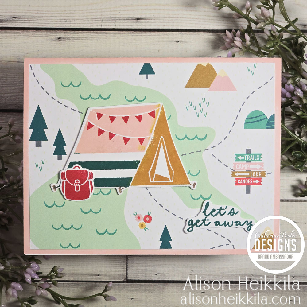 Hello! I am really stoked to bring you 2 cards today that use some of the new collection from Catherine Pooler, called Trail Mix. Plus, there’s a brand new ink color, called Getaway, and I totally love it. The stamp set I’m using today (called Gone Camping) is free with a purchase of $50 or more, and it’s so cute.