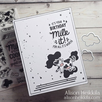 Greetings! I've got another card to share that uses the March 2026 My Monthly Hero Kit from Hero Arts. I kept this one fairly clean and simple (for me) and used only black and white with two small touches of pink. The little cow from this stamp set is so cute, I needed her to be the focal point of ... Read More about Clean & Simple Cow-Themed Birthday Card