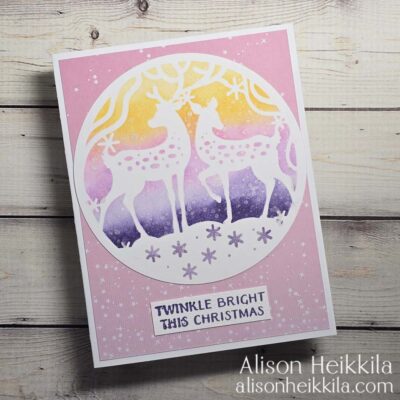 Hello! Today's card uses the Snowflake Deer Stencil from A Colorful Life Designs. I wanted to use colors that made it look like a sunrise (or a sunset, I guess) so I pulled out some Catherine Pooler Inks and started to play. *Some affiliate links are used in this post. That means that if you shop ... Read More about Snowflake Deer