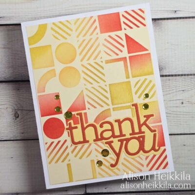 Hello! I've got a super-simple thank you card to share today that uses the Bauhaus Stencil from A Colorful Life Designs and 3 colors of Catherine Pooler Ink. You can customize this easily to work with any colors you like, and this stencil works with many sentiments as well. *Some affiliate links are ... Read More about Bauhaus Thank You