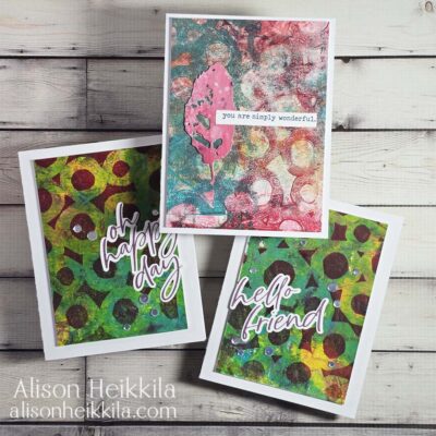 Hello! In my last YouTube Video (which you can see HERE), I made several monoprints using a single stencil and 5 paints, on top of some other prints that needed some extra love. They turned out great, and I was excited to turn them into cards for you. That's what we'll be doing in today's video. ... Read More about 1 Stencil + 5 Paints = Lots of Gel Prints: Part 2: YouTube Video